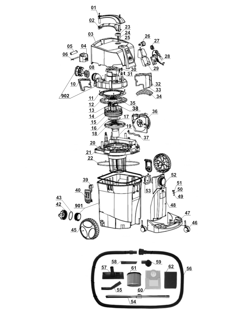 Ersatzteile für RT-VC 1600 E; EX; Korea kaufen über die Listenansicht oder über die Explosionszeichnung