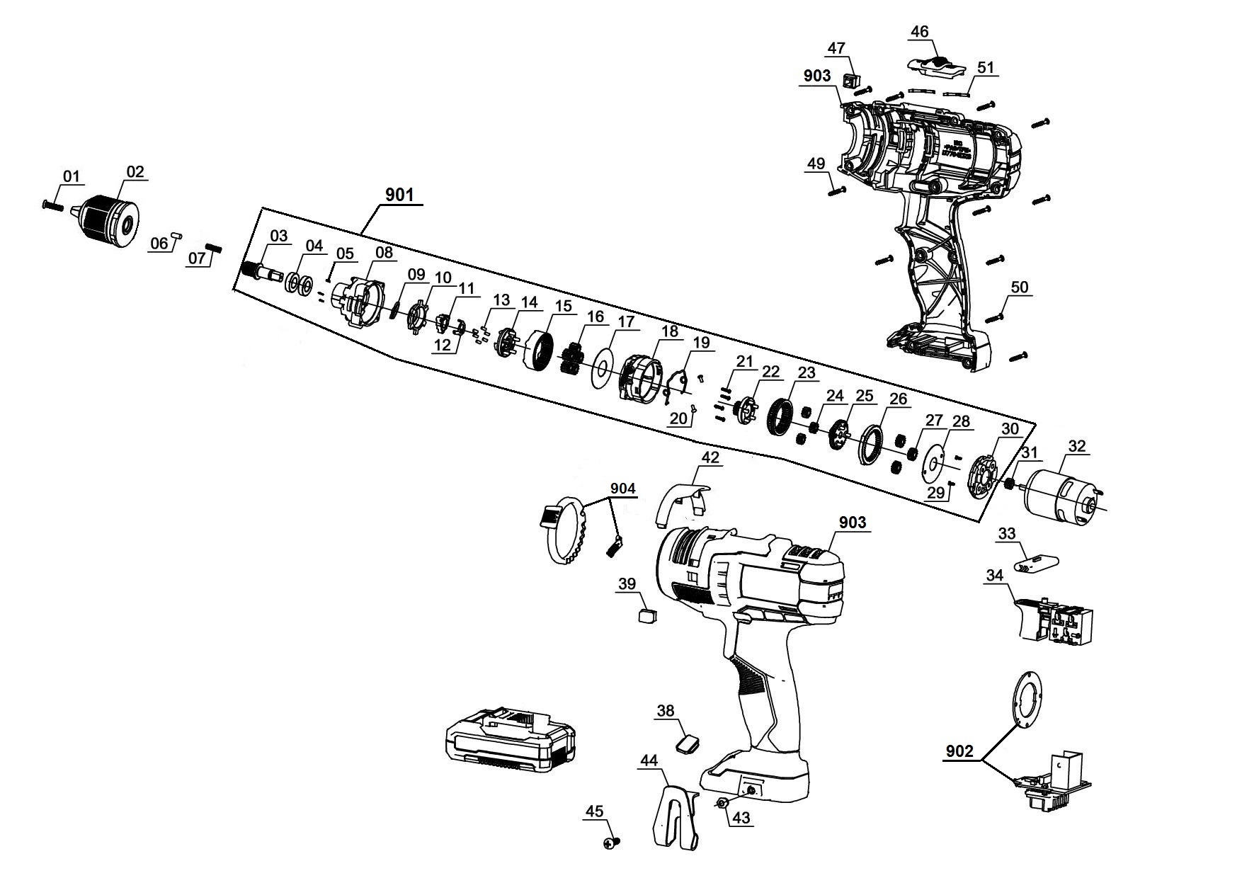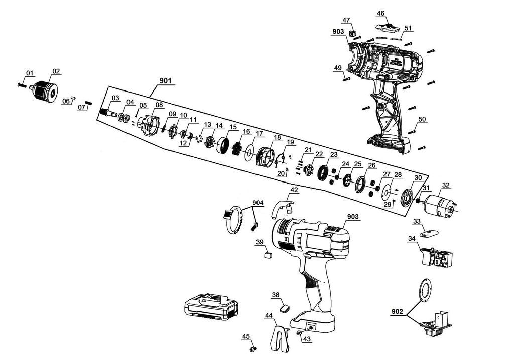Ersatzteile für TE-CD 18 Li E-Solo kaufen über die Listenansicht oder über die Explosionszeichnung