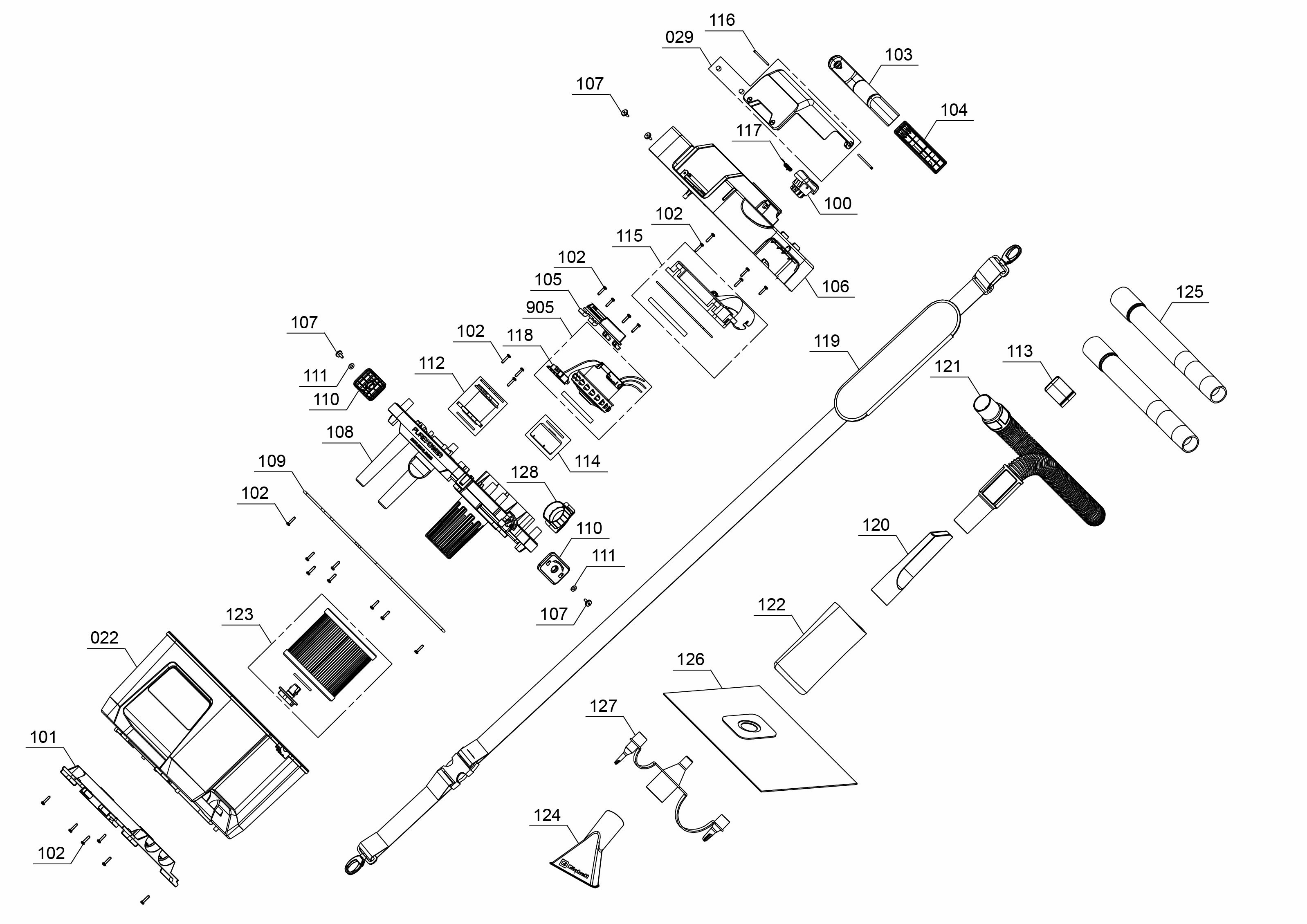 Spareparts for TP-VC 18/10 Li BL L-Solo displayed via list view or via explosion drawing
